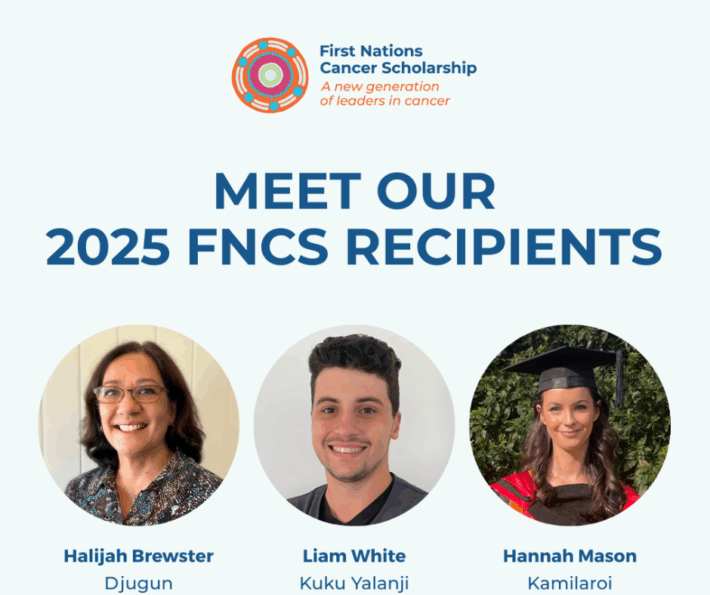 The First Nations Cancer Scholarship was launched in 2024, with successful Indigenous scholars receiving up to $120,000 per year over three years, as well as academic, wellbeing and community support. More information here.
